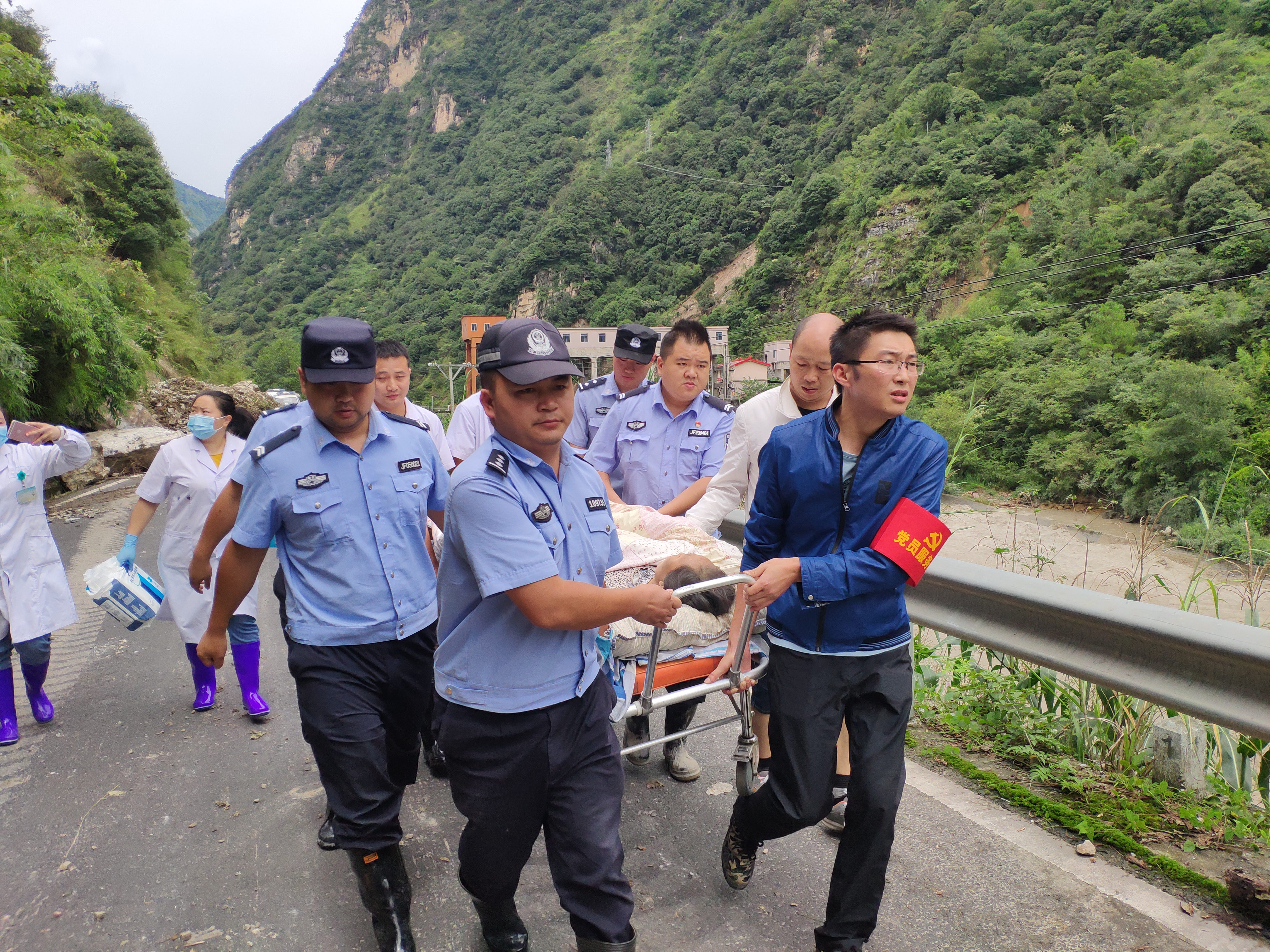 8月17日,365体育入口_日博365登录网址_365篮球直播吧陇东镇赶羊沟村8组一村民被倒塌的房屋砸伤,365体育入口_日博365登录网址_365篮球直播吧陇东镇纪委书记(右一)接到消息后,立即组织救援队前往。由于道路被泥石流中断,救援队步行近10小时的路程,将孟徐芬送达陇东镇卫生院医治。