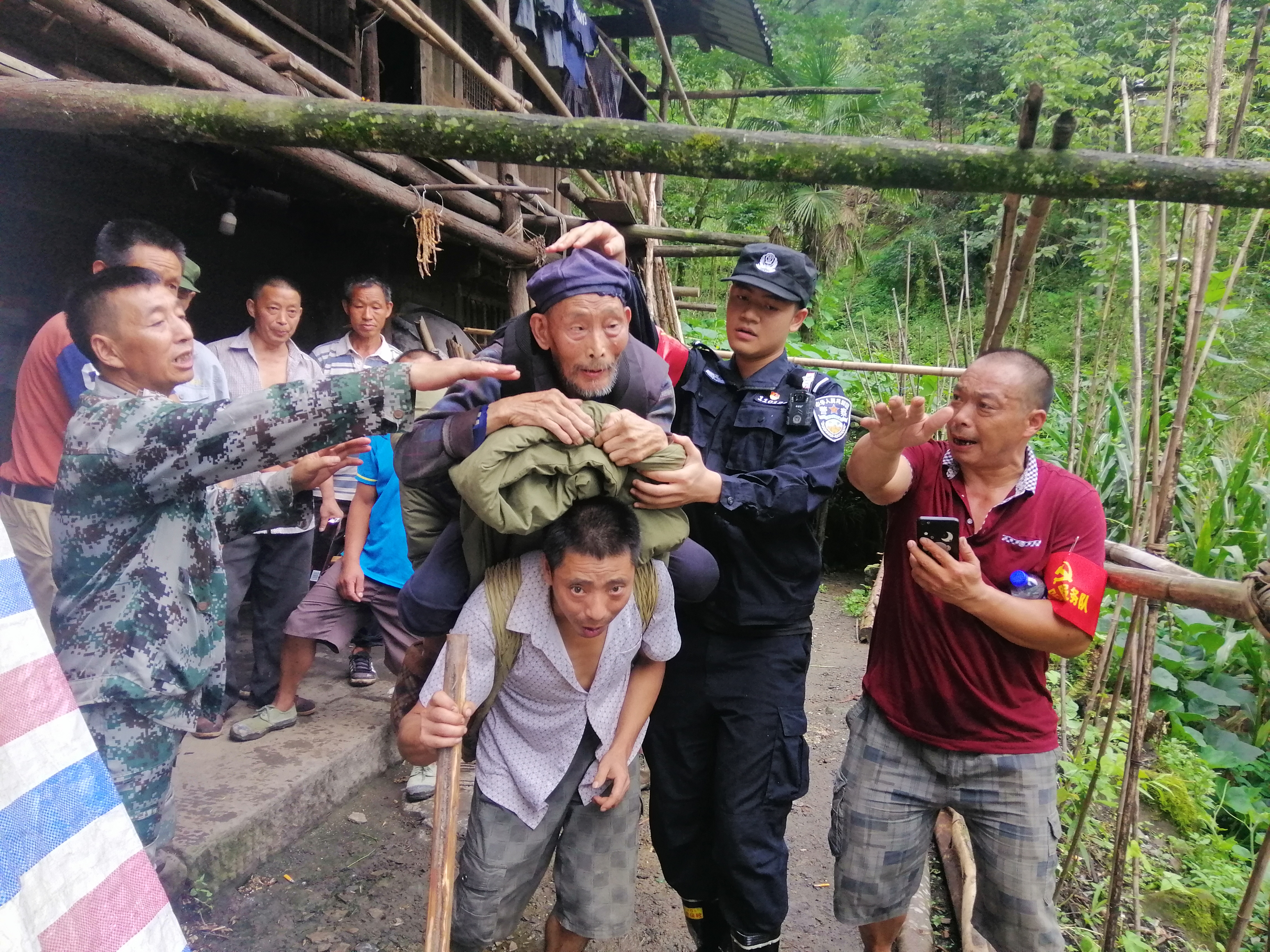 365体育入口_日博365登录网址_365篮球直播吧蜂桶寨乡纪委书记(左一)帮助受威胁群众紧急撤离